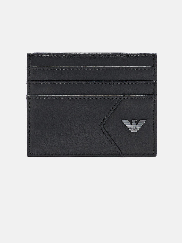 The ideal cowhide card holder for all your must-have cards and documents. A small leather goods item that embodies the hallmark Armani style: essential and sophisticated. Square, modern shapes embellished with decorative geometric details. The tanned nappa leather has a supple, natural appearance, where the imperfections are considered a characteristic of the item, making it unique. The iconic metal contoured eagle completes the accessories.