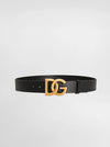 Lux leather belt featuring a new ruthenium-plated crossover DG logo buckle.