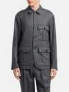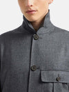 Shirt jacket made of a stretch virgin wool twill, a flannel-like stretch fabric. A versatile style that lends itself to being worn two ways: the comfort of a shirt that acquires the structure of real outerwear.