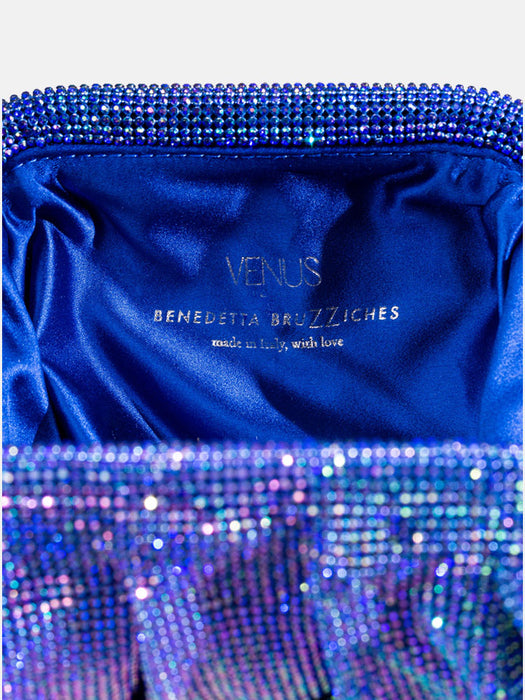 With soft and wavy shapes, Venus is made with a network of sparkling crystals sewn by hand with the same attention that would be devoted to a jewel. Inside, a silk satin clutch is ready to welcome the necessary for an evening out.