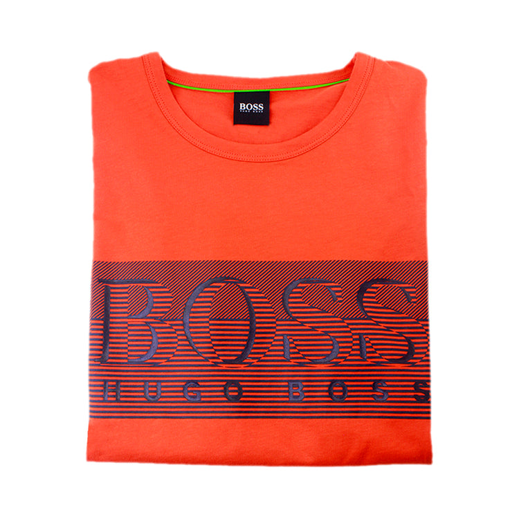 A high-impact T-shirt by BOSS Menswear, created in single-jersey cotton for a super-soft touch. Cut to a regular fit with a mid-weight feel, this crew-neck T-shirt is printed with a new-season interpretation of the BOSS logo set inside fineline artwork. Add a graphic finish to casual looks with this statement design.